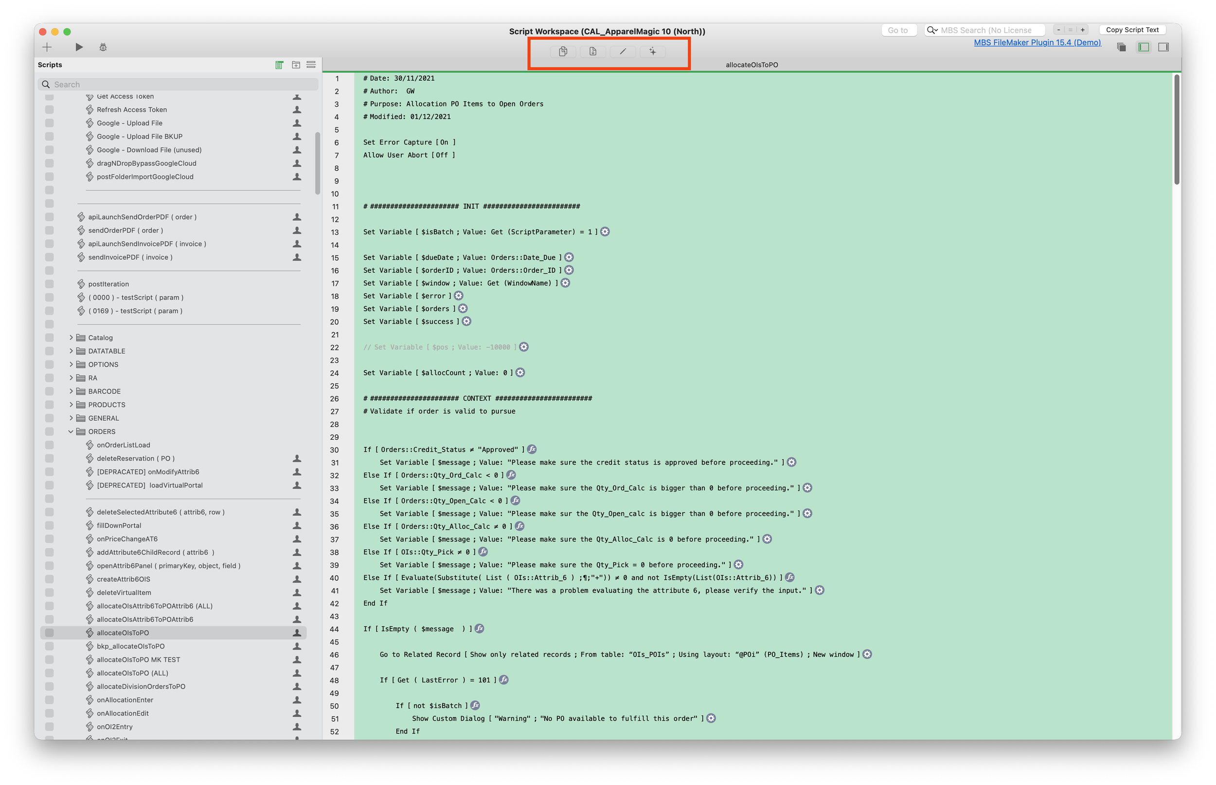 Script Workspace Buttons
