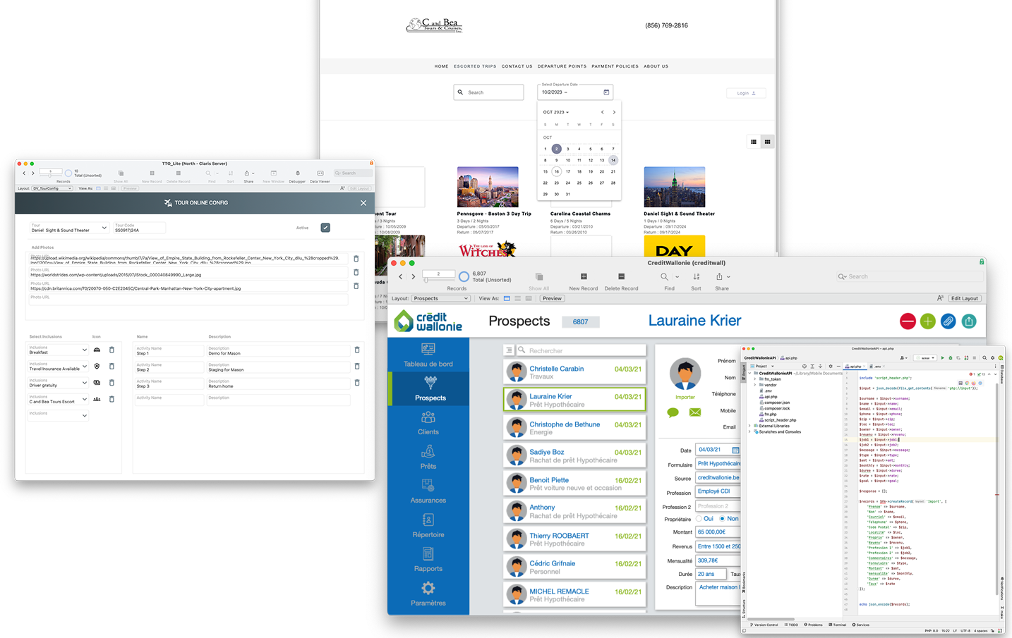 We design and deploy tailored web applications to streamline your operations and extend what FileMaker can do. From reservation systems to internal dashboards to custom WordPress bridges—we make the outside world connect effortlessly with your Claris ecosystem. Every solution is built with security, scalability, and performance in mind. With deep expertise in Python, Angular, PHP, TypeScript, SQL, and more—we turn your workflows into smooth, automated experiences.