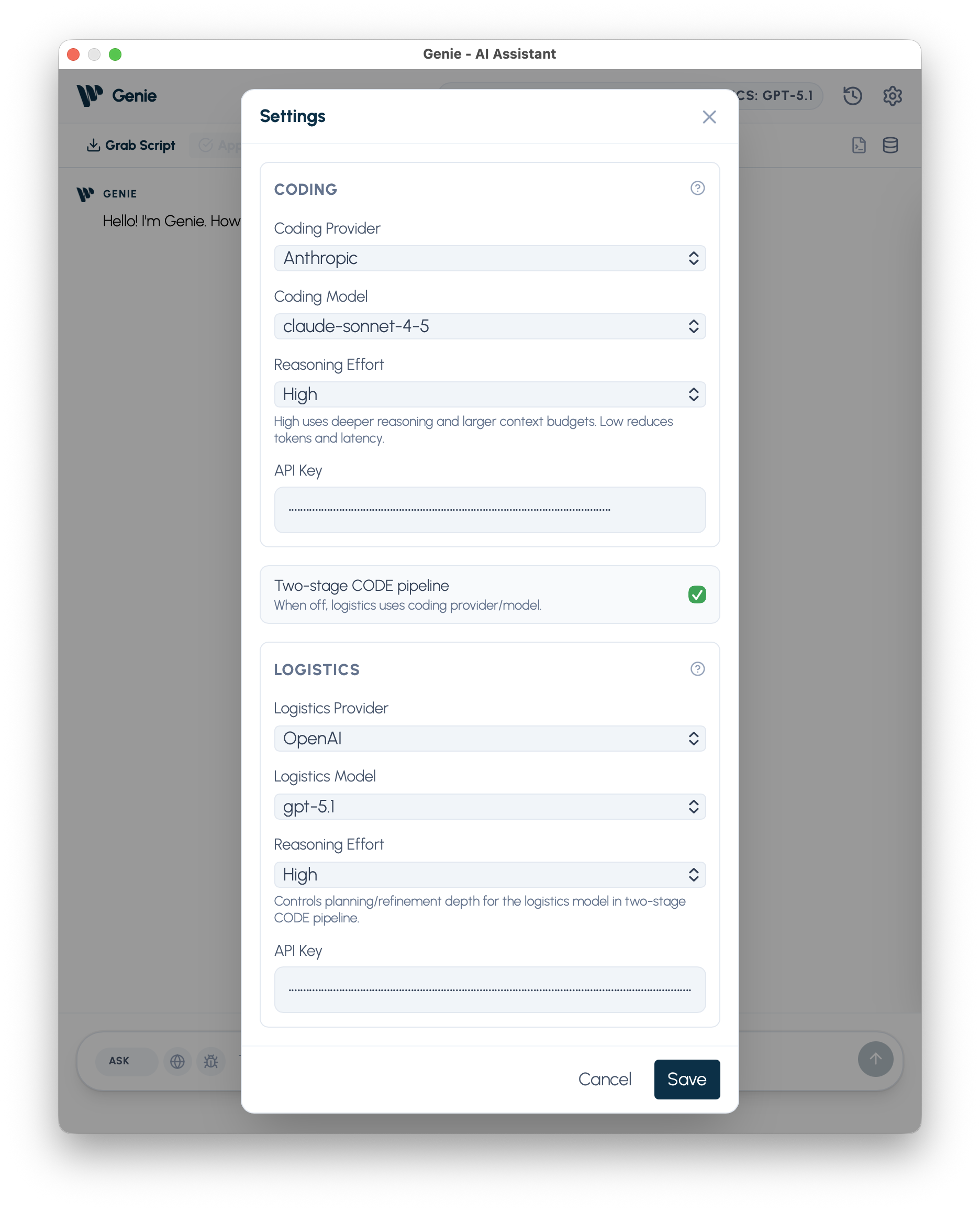 Genie is an AI assistant for real FileMaker development: write scripts, reason with metadata-aware context, preview XML, and apply changes back to FileMaker in one click, all from a FileMaker plug-in.